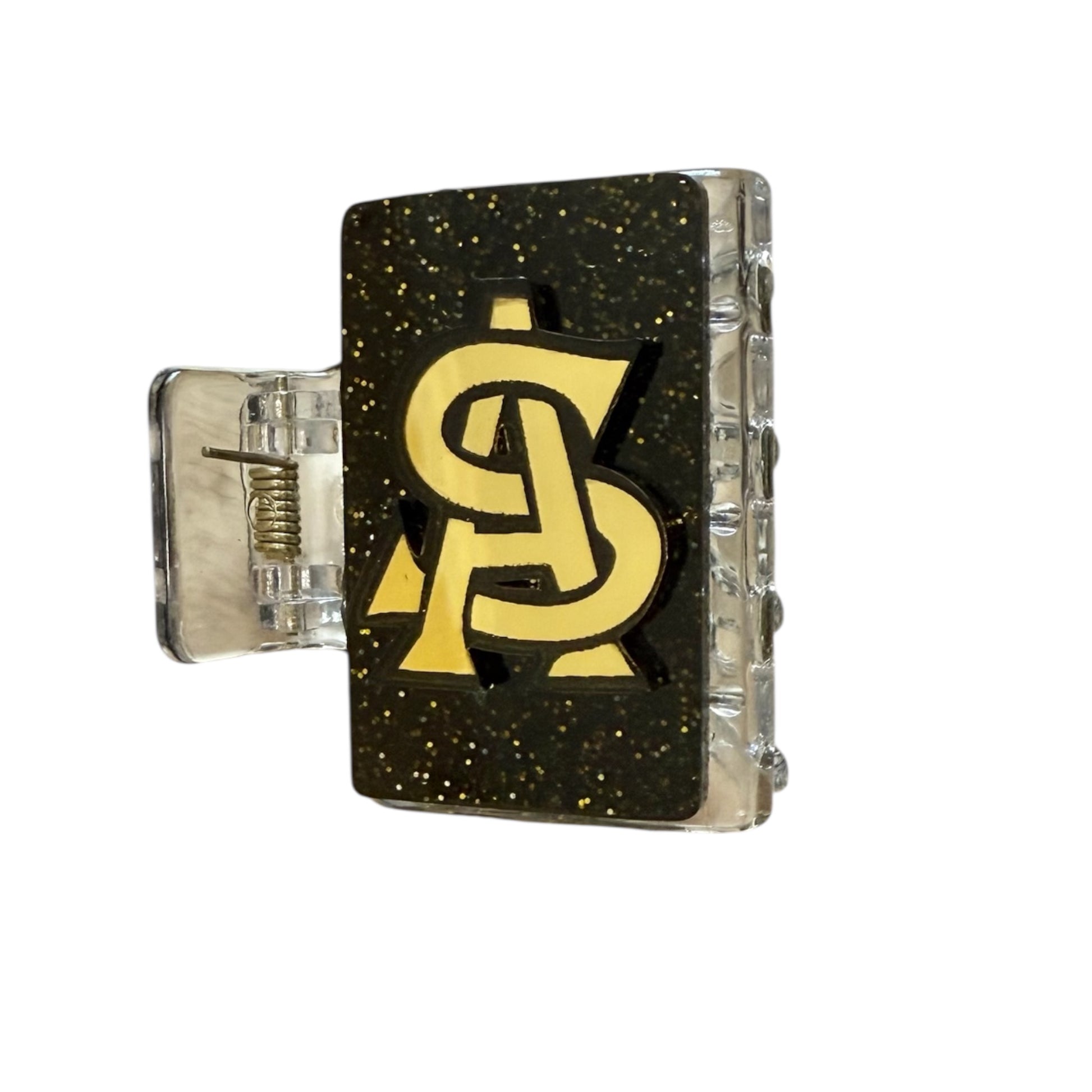 Add a stylish touch to your game day look with the 2" Amarillo Sandies Hair Clip. Featuring a sleek black and gold design, this hair claw clip holds your hair securely while showing off your team spirit. Perfect for sports fans who want both functionality and flair, it keeps your hair neat during the most exciting moments. Elevate your fan gear effortlessly with this practical and eye-catching accessory.