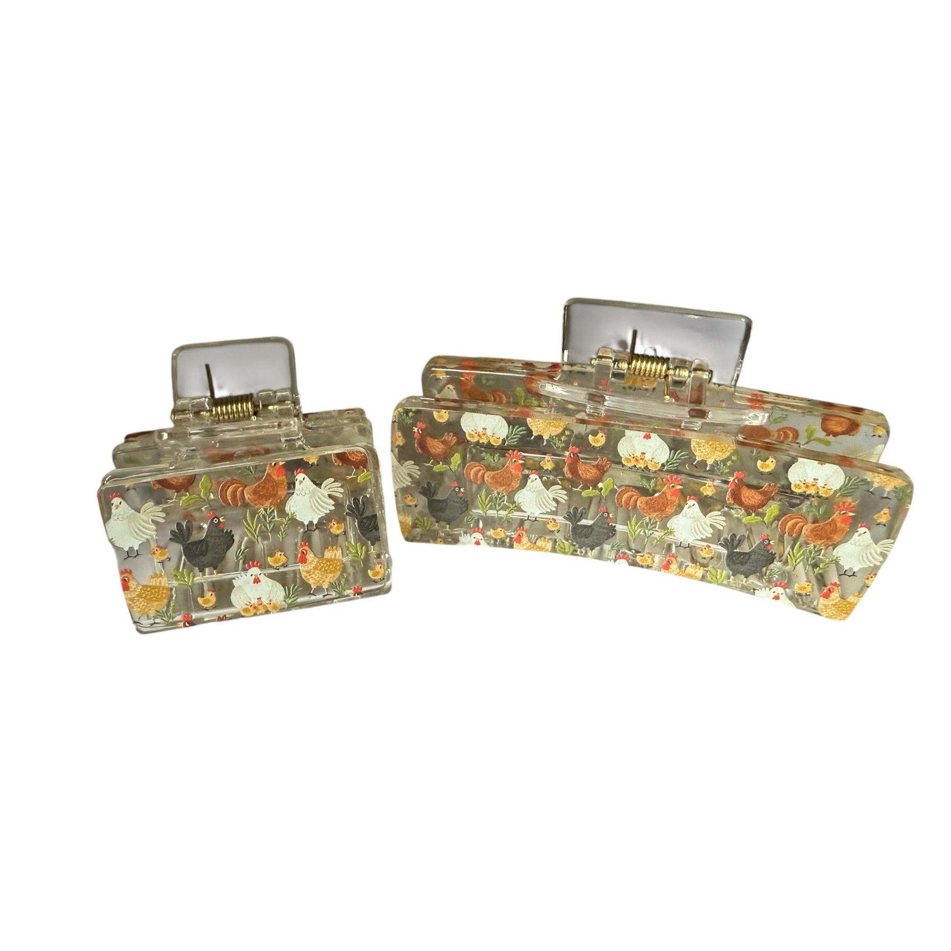 Add a charming touch to your hairstyle with these 2" and 4" acrylic chicken hair clips. Designed to securely hold your hair while showcasing a playful farm inspired design, these clips are both functional and fun. Perfect for anyone looking to add a bit of rustic personality to their look, they provide gentle grip without damaging your hair, making everyday styling effortless and enjoyable.