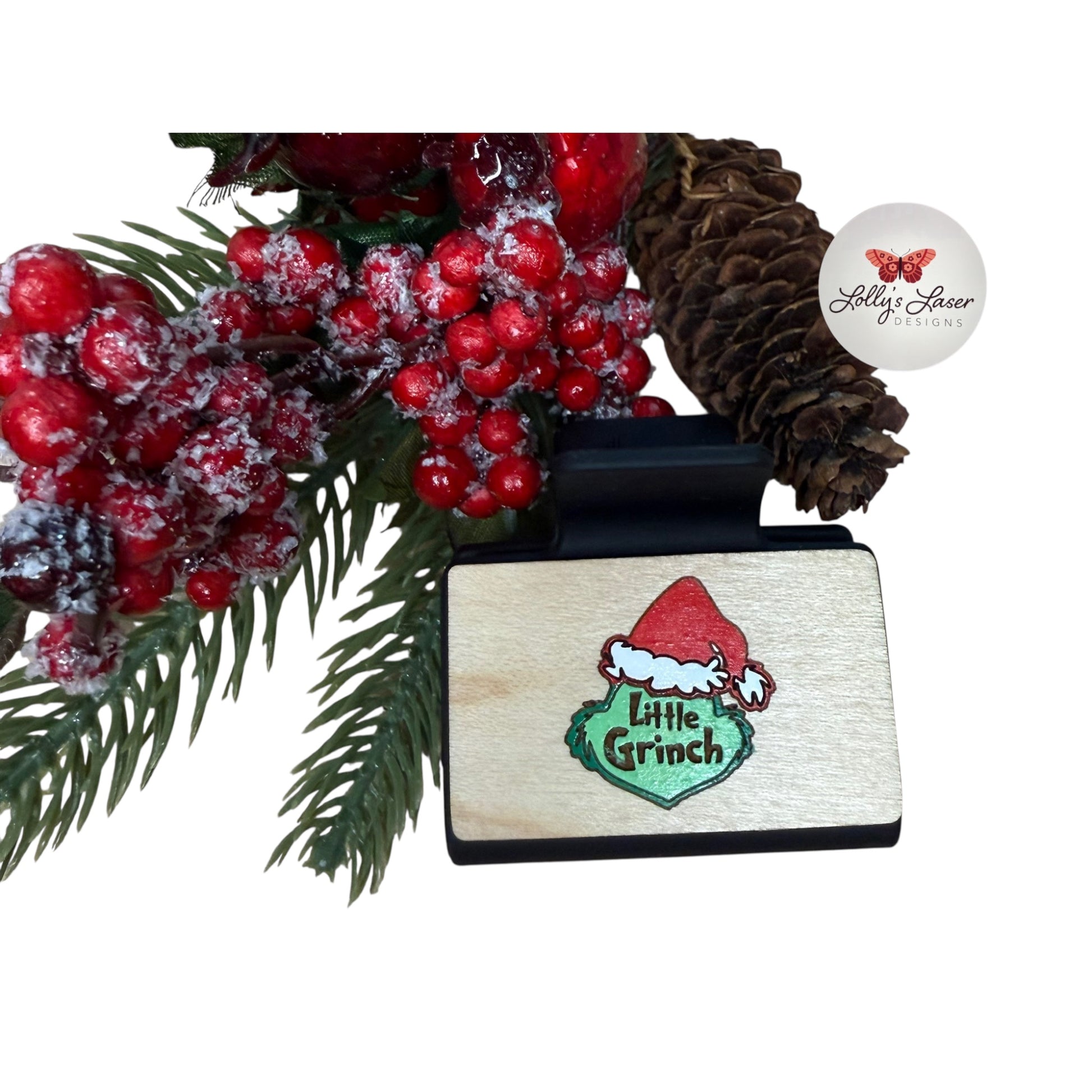 Celebrate the season with this exquisite 2" Little G Claw Clip, featuring intricate laser cut and engraved Christmas designs. Hand painted with meticulous care, each clip becomes a wearable work of art that captures holiday magic. Secure your hair in style while showcasing artisanal craftsmanship that stands out from mass produced alternatives. Whether for yourself or as a thoughtful gift, this festive accessory brings warmth and personality to your holiday collection.