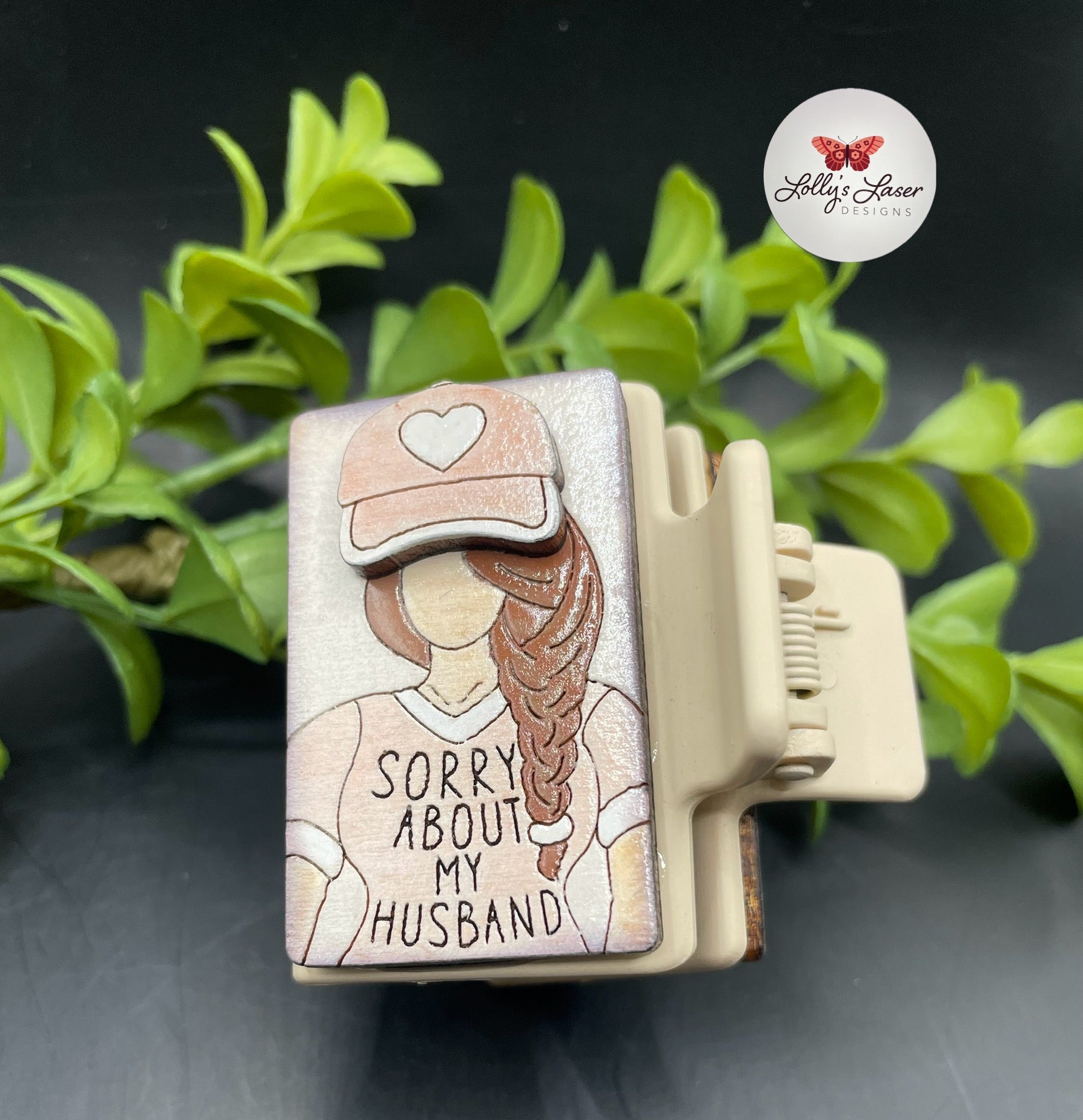 Keep your hair styled while keeping your sense of humor intact with this playful 2" hair claw clip. Crafted from laser cut and engraved wood, then hand painted with charming detail, it's both functional and funny. The perfect accessory for anyone who loves their husband despite his quirks. This unique piece holds hair securely while making a lighthearted statement about married life. Whether you're wearing it daily or gifting it to a friend, it's a witty conversation starter that celebrates love with a laugh.