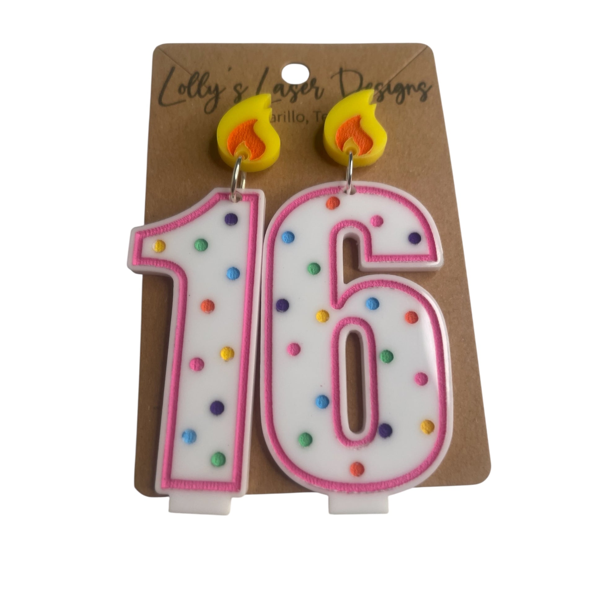 Celebrate in style with these stunning Acrylic Birthday Candle Earrings, meticulously laser cut and engraved for precision detail. Each pair features hand painted accents that bring vibrant personality to the classic candle design. Perfect for birthday lovers or as a thoughtful gift that captures the joy of special moments, these lightweight earrings combine artistic craftsmanship with wearable charm. Whether you're treating yourself or surprising someone special, these unique pieces spark conversation and delight. All numbers available. Contact shop for customized order.