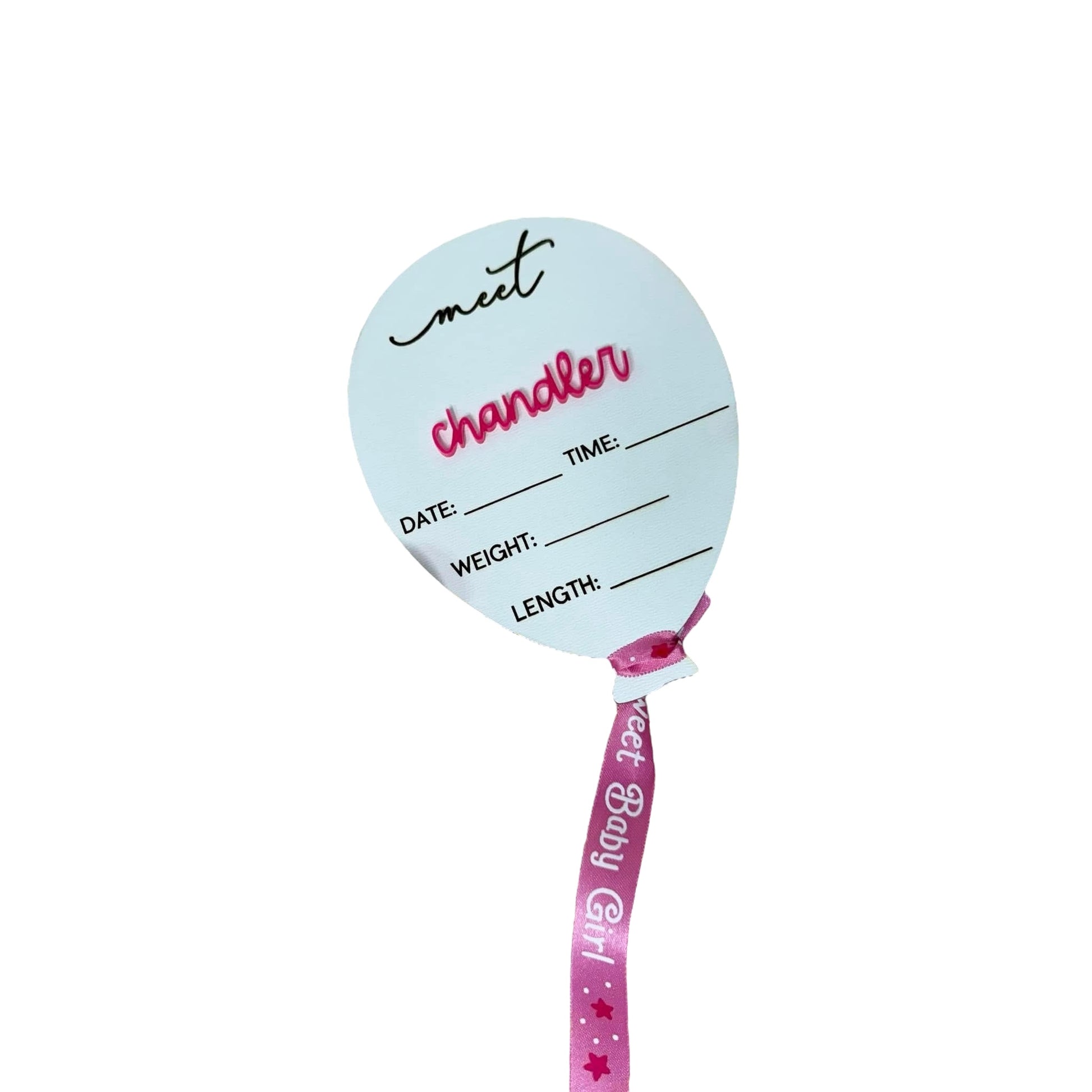 Announce baby's arrival in style with this charming 6" X 5" balloon perfect for celebrations and photo displays. The plain design gives you complete creative freedom write in baby's name with Sharpie markers or paint pens for a personalized touch. Simply add your choice of ribbon to match your theme, whether it's boy, girl, or neutral. Want something extra special? Upgrade with engraved names or custom acrylic and wooden name cutouts (additional charges apply). A versatile, budget friendly way to share your joyful news with family and friends.