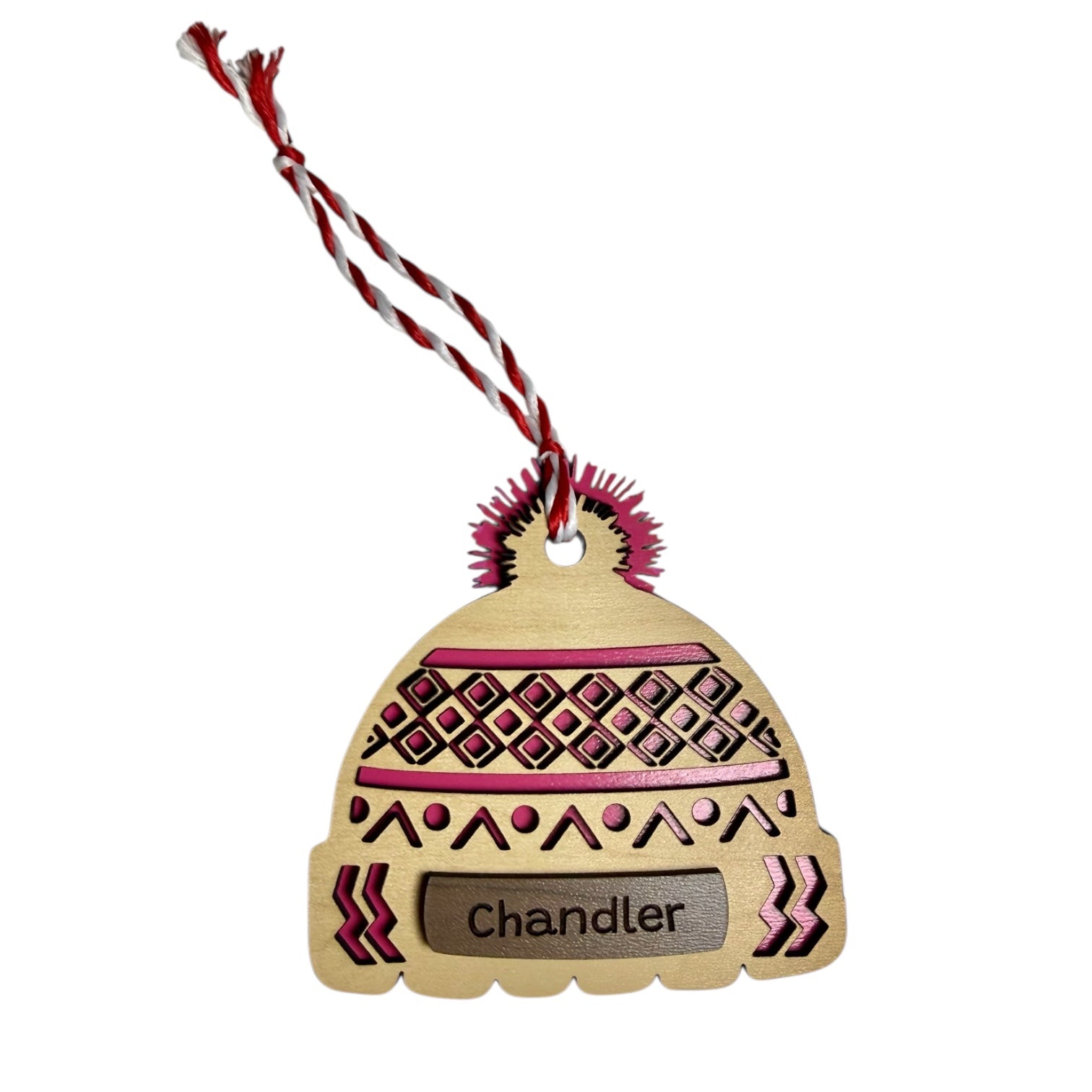 Add a warm, handmade touch to your holiday décor with this adorable set of layered Winter Hat Name Ornaments! Each ornament features a cozy knit-style pattern and a space to personalize with any name — perfect for families, kids, gift tags, stockings, classroom gifting, and holiday crafting.