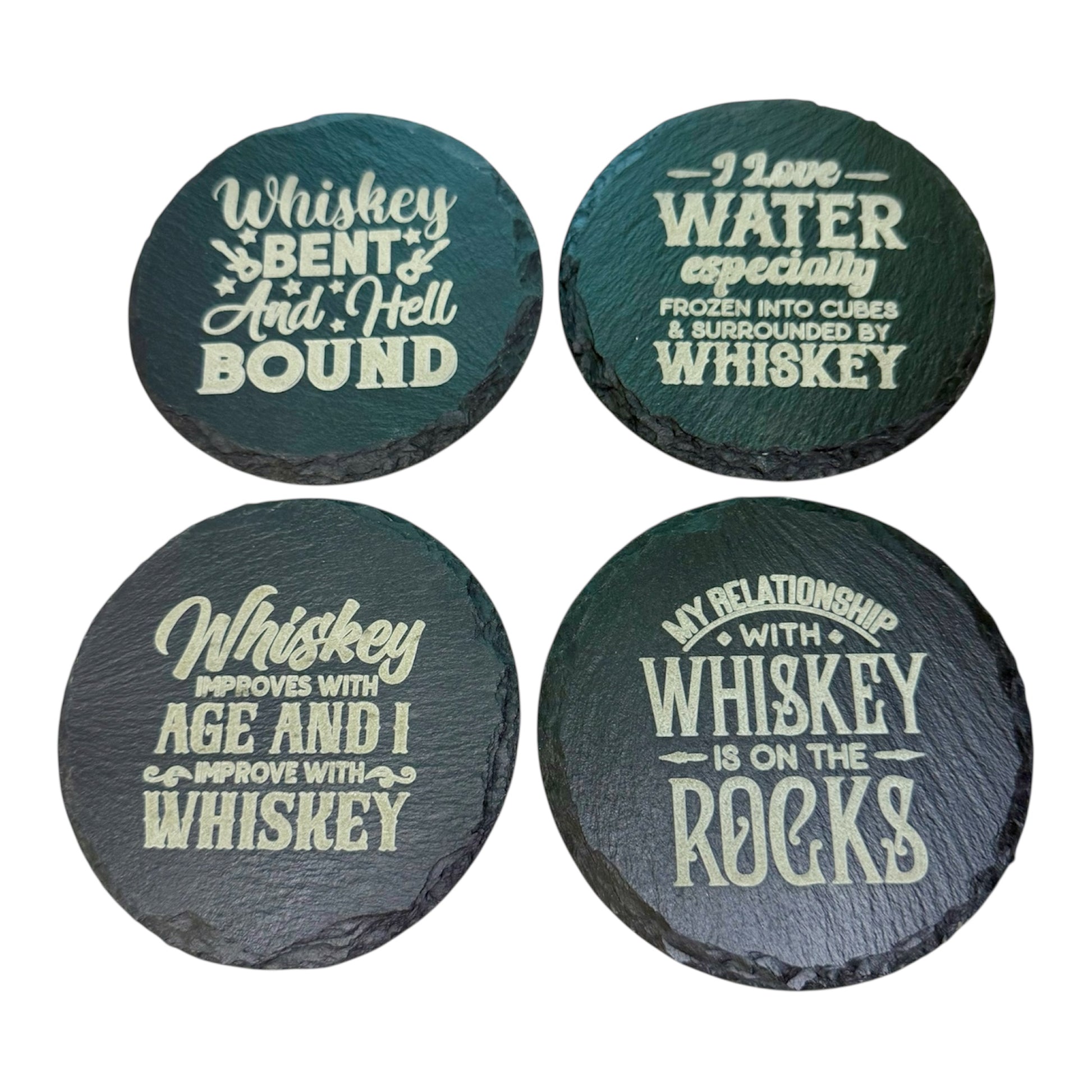 Crafted for whiskey lovers, these slate coasters add a rustic charm to any bar or man cave. Each coaster features classic whiskey sayings that spark conversation while protecting your surfaces from spills and stains. Durable and stylish, they offer a thoughtful touch that enhances your drinking experience.