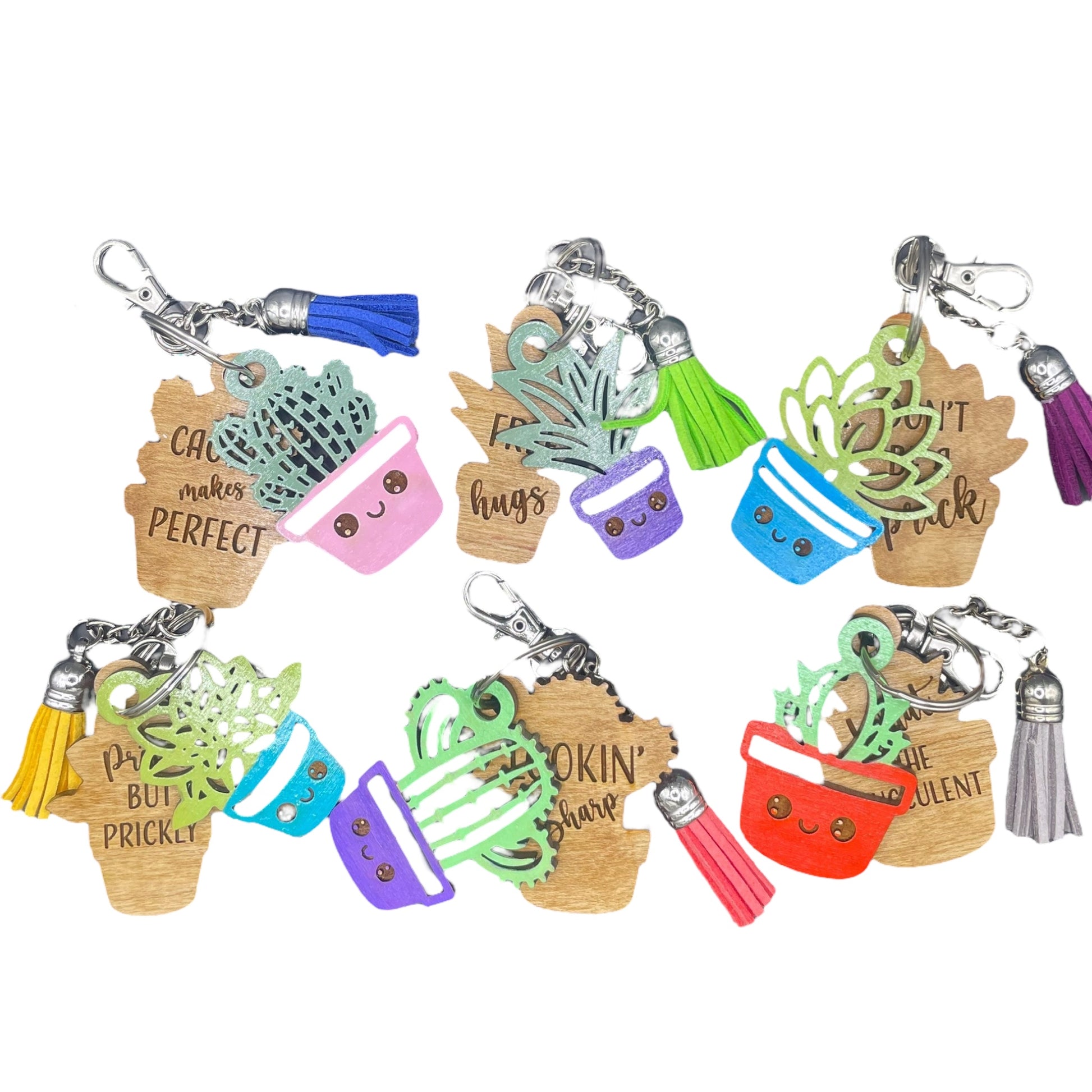 Add a little succulent sass to your keys with this Wooden Succulent Keychain! Laser engraved for precision and hand painted for personality, it’s the perfect mix of nature and nonsense. You can finally stop losing your keys! A quirky, charming way to keep your essentials close and your sense of humor closer.